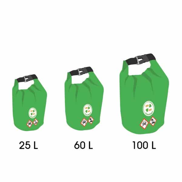 1) Des contenants étanches et ignifuges adaptés au choix de 25L (18 000 mégots), 60L (40 000 mégots), 100L (70 000 mégots). Fermeture hermétique pour un stockage et un transport des mégots sans risque ni odeurs,
